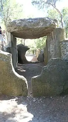 Les monuments mégalithiques commencent à être décrits notablement au XVIe siècle et jusqu'au XVIIe siècle : leur origine est l'œuvre de créatures surnaturelles (lutins, géants (Gargantua, Djouhala), goules, fées...)[28], d'affrontements entre le diable et la vierge Marie ou des saints (qui donnent alors leurs noms aux mégalithes), « rappelant ainsi la lutte des premiers évangélisateurs contre le culte des pierres[29] », de punitions divines punissant les auteurs d'un sacrilège par une pétrification instantanée (alignements mégalithiques)[30].