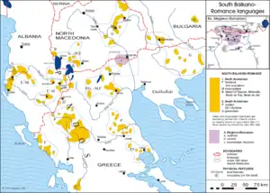 Le mégléno-roumain, dit aussi méglénite (μογλενίτικη γλώσσα en Grèce, мъгленитски en Macédoine du Nord), est un groupe de dialectes parlés par une population appelée « Mégléno-roumains » dans les milieux académiques. Son statut est controversé. Certains linguistes, par exemple le roumain Alexandru Graur (en), le considèrent comme une langue à part faisant partie des langues romanes orientales, avec le roumain, l’aroumain et l’istro-roumain, mais la plupart des chercheurs y voient un dialecte du roumain. Parmi ceux-ci il n’y a pas d’unité quant au statut du mégléno-roumain par rapport aux autres idiomes romans de l'Est[3].
