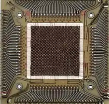 La photo ci-contre représente la tranche d'un byte (64×64×1). Les mémoires avaient la forme d'un bloc de 20 cm de côté, comportant de 19 à 25 tranches pour former environ 4 K-mots de 19 à 25 bits[8],[9]. Chaque tore était traversé par trois fils :