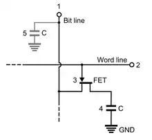 La mémoire DRAM utilise la capacité parasite drain/substrat d'un transistor à effet de champ.