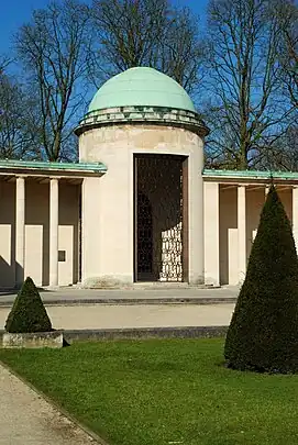 Les toits des galeries et la coupole de la rotonde sont recouverts de cuivre[3], d'une couleur vert clair qui se marie bien à la couleur de la pierre.