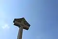 Le mémorial est constitué d'un socle en pierre surmontée d'une croix chapeautée d'environ 4 m de haut.