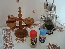 La ménagère de table est un ensemble de petits récipients, contenant des épices ou assaisonnements, regroupés sur un même support.