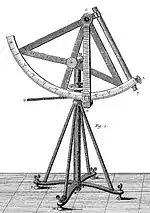 L'instrument de mesure des angles, pendant les deux siècles concernés, est principalement le quart de cercle mobile. Il va évoluer et son exactitude ira en s'améliorant.