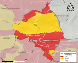 Les mouvements de terrains susceptibles de se produire sur la commune sont soit des chutes de blocs, soit des glissements de terrains, soit des effondrements liés à des cavités souterraines, soit des mouvements liés au retrait-gonflement des argiles. Près de 50 % de la superficie du département est concernée par l'aléa retrait-gonflement des argiles, dont la commune de Mérigon[41]. L'inventaire national des cavités souterraines permet par ailleurs de localiser celles situées sur la commune[42].
