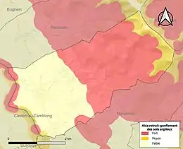 Le retrait-gonflement des sols argileux est susceptible d'engendrer des dommages importants aux bâtiments en cas d’alternance de périodes de sécheresse et de pluie[35]. 61 % de la superficie communale est en aléa moyen ou fort (59 % au niveau départemental et 48,5 % au niveau national)[Carte 5]. Depuis le , en application de la loi ELAN, différentes contraintes s'imposent aux vendeurs, maîtres d'ouvrages ou constructeurs de biens situés dans une zone classée en aléa moyen ou fort[Note 6],[36].
