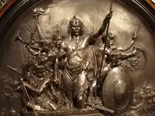 Mérovée Roy de France - Vue d'artiste (médaille en bronze de Jean Dassier, 1720. Bibliothèque nationale de France). | |