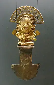 La métallurgie semble avoir émergé simultanément dans deux régions différentes dans la zone frontalière entre le Pérou et l'Équateur, où les Amérindiens ont même travaillé le platine bien avant sa découverte par les Européens[20] ; et plus au sud sur l'Altiplano où l'on a retrouvé des scories indiquant l'existence d'une technique de fusion des sulfures de cuivre datant de près de 2 500 ans[21],[11], le minerai en lui-même étant sans doute originaire du sud de la frontière entre la Bolivie et le Chili. Les traces d'une métallurgie basée sur la fusion complète des métaux n'apparaissent cependant qu'avec la culture Moche (côte nord du Pérou, sur une période comprise entre 200 et 600 apr. J.-C.).[réf. nécessaire]
