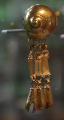 La métallurgie n'est apparue en Mésoamérique que vers 800 apr. J.-C., vraisemblablement dans l'ouest du Mexique[14]. Comme en Amérique du Sud, les objets fabriqués étaient surtout destinés aux élites ; la couleur du métal tout comme ses qualités acoustiques ont en premier attiré l'intérêt des individus, suscitant ainsi l'adoption de son usage[14],[15].