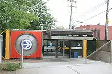 Contrairement à d'autres métros de grandes villes, les entrées de presque toutes les stations du métro de Montréal sont complètement fermées, en général dans un édicule, pour les protéger des intempéries. La plupart des édicules sont munis, depuis 1976, de portes d’accès de type « papillon » dont l’ouverture est facilitée dans les forts courants d’air créés par l'effet piston des rames en mouvement dans les tunnels[58]. Toutes les entrées sont en retrait du trottoir. Plusieurs stations du centre-ville ont un accès direct par l'intérieur à d'autres édifices, faisant ainsi du métro une partie intégrante de la ville souterraine de Montréal.