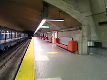 Les quais des stations, longs de 152,4 mètres (500 pieds) et larges d'au moins 3,8 mètres sont positionnés de part et d'autre des voies sauf dans les stations de correspondance Lionel-Groulx, Snowdon et Jean-Talon, où ils sont superposés afin de faciliter les transferts entre les lignes dans certaines directions[56]. Les stations Charlevoix et De l’Église sont elles aussi aménagées avec des quais superposés, mais pour des raisons d’ingénierie, le roc du sous-sol dans le secteur (du schiste) étant trop friable pour une station avec plus d'emprise[55]. Les stations terminus des futurs prolongements pourraient être à quais centraux[57] pour accommoder une boucle de retournement.
