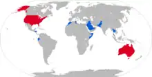 Carte des opérateurs du M198 en 2017. En rouge, les pays qui l'ont retiré du service.
