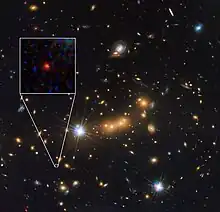 MACS0647-JD est une galaxie primitive découverte le . Elle serait l'une des galaxies connues les plus éloignées de la nôtre et l'une des plus vieilles, mais sa distance n'a jusqu'à présent pas été confirmée par spectroscopie. Z8_GND_5296 est moins distante mais sa distance a été confirmée par spectroscopie.
