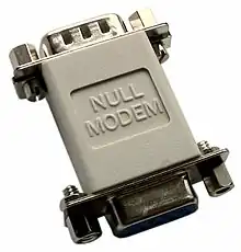 Pour transmettre des informations entre deux ordinateurs se trouvant dans la même pièce, il suffit de déconnecter les deux modems et de placer entre les deux ordinateurs un boîtier muni de deux connecteurs DB-25 ou DB-9 ; ce boîtier, dont la fonction est de remplacer les deux modems est appelé modem nul (Null Modem). À l’intérieur du boîtier, les broches des deux connecteurs sont reliées de la façon suivante[3] :