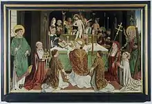 - Retable de Richterich[28]. Provient de l'église Saint-Martin de Richterich, un quartier d'Aix-la-Chapelle. Dispersé.