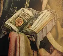 - Un volet de retable, au Landesmuseum de Mayence, qui représente saint André et sainte Colombe.