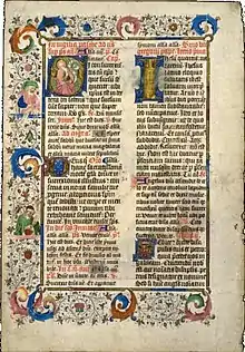 - Livre d'heures, 9 lettrines historiées, vers 1430, Bibliothèque du canton de Thurgovie, Frauenfeld, ms. Y.25