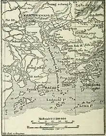 Au cours du XIXe siècle, les Portugais occupent la partie Nord de la péninsule de Macao (alors occupée par les Chinois) et les îles de Taipa (en 1851) et Coloane (en 1864)[8]. Ils commencent également à étendre leur influence sur les îles voisines de Lapa, Dom João e Montanha.