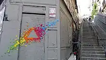 Ses créations, hétéroclites et inattendues, se développent au hasard des façades des bâtiments, à même la rue, en opposition avec la « grisaille du béton » et soumis aux yeux des passantes et passants[8].