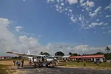 Il existe un aérodrome à Kilindoni (en), sur la côte ouest de l'île. 7° 54′ 41″ S, 39° 39′ 55″ E