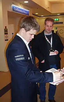Sven Magnus Øen Carlsen (prononcé /sʋɛn ˈmɑŋnʉs øːn ˈkɑːɭsn̩/), né le à Tønsberg en Norvège, est un joueur d'échecs norvégien, grand maître international, numéro un mondial au classement Elo, et champion du monde entre 2013 et 2023.