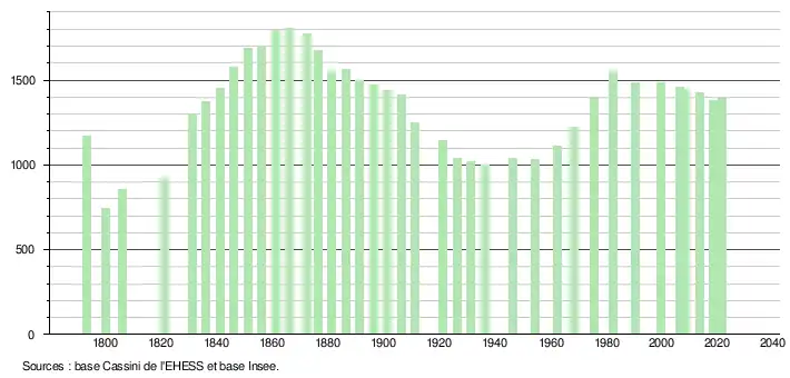 1 401 hab. (2021 en diminution de 0,92 % par rapport à 2015)