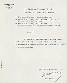 - René Riesel, Adresse au Conseil de l’Université de Paris, Paris, 10 mai 1968, lire en ligne.