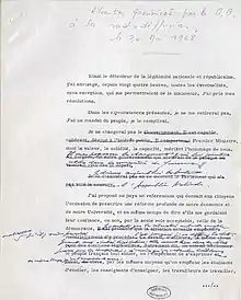 Avant comme après le rejet par la base, le , des accords de Grenelle, négociés par le Premier ministre Georges Pompidou avec les syndicats, Charles de Gaulle apparaît dépassé par les événements. Après sa disparition-surprise de 24 heures le 29 mai, il revient de Baden-Baden, quartier général de l'armée française en Allemagne, et reprend l'initiative en décrétant le la dissolution de l'Assemblée nationale.