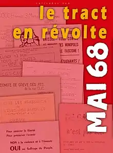 En France, ces événements prennent cependant une coloration particulière car d'importantes manifestations d'étudiants sont rejointes à partir du par la plus importante grève générale du XXe siècle en France, dépassant celle survenue en juin 1936 lors du Front populaire[20]. Elle paralyse complètement le pays pendant plusieurs semaines et s'accompagne d'une recherche effrénée de prise de parole, d'une frénésie de discussions, de débats, d'assemblées générales, de réunions informelles et d'auto-organisation pour la fourniture de nourriture, et de recherche de plaisirs, dans la rue, à l'intérieur des organismes, des entreprises, des administrations, des lycées et des universités, des théâtres, des maisons de jeunes, des maisons de la culture, et plus généralement dans tout le pays, ses villages, ses cités et dans les familles.