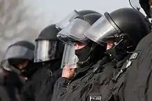 • La stratégie de la désescalade est adoptée en Allemagne, comme dans d'autres pays tels que la Suède, le Danemark, l’Angleterre ou les Pays-Bas[11]. Elle consiste à cibler individuellement des personnes posant problème au sein d’une manifestation, et non pas de considérer la foule dans son ensemble. Au sein de la manifestation, on trouve ainsi des personnes clairement identifiées comme étant des policiers (portant un gilet « Gestion de conflit »), qui se font le relai des unités de maintien de l’ordre, en communiquant directement avec les manifestants, en leur expliquant au besoin pourquoi les policiers font telle ou telle manœuvre, et pourquoi à un autre moment il faut se pousser. Ce dialogue permet généralement de maintenir le calme.