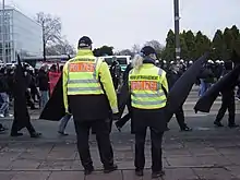 Policiers revêtus d'un gilet « Gestion de conflit » (Konfliktmanagement), lors d'une manifestation à Magdebourg en 2011.