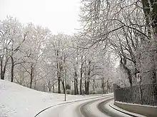 Partant de là vers l'est, le quartier en forme de ruban occupe le côté gauche de la vallée du Zaybach, avec le cimetière principal au nord, le cimetière juif à son extrémité sud, et encore au sud les restes de l'aqueduc romain (Attach ou Aquädukt ou Römersteine), avec au milieu la clinique Hildegardis-Krankenhaus. Cette partie de la vallée du Zaybach aux pentes fort inclinées correspond à la partie nord de l'ancien lieu-dit Zahlbach (de), incorporé à Mayence depuis 1804.