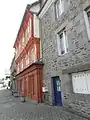 Maison en pans de bois entièrement recouverte en ardoises dont la disposition forme des dessins, et comportant deux étages en encorbellement l'un sur l'autre. La sablière du plancher du deuxième étage est moulurée et ornée de godrons. La façade principale en pan-de-bois était autrefois recouverte d'ardoises. Une restauration récente a restitué la structure et le décor de celui-ci. La sablière du plancher du deuxième étage est moulurée et ornée de godrons[1].