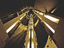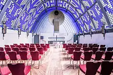 Aujourd’hui, à l’intérieur, un éclairage design met en valeur le choix de couleurs vives et les lignes fluides du décor intérieur[4]. Le bâtiment possède un escalier futuriste en colimaçon en verre et béton qui mène au Himmelssaal au premier étage avec un plafond décoré de blocs de verre blancs et bleus[4],[5]. Les trois étages débutaient à l'origine avec une salle de lecture au premier étage, la salle de bal Himmelssaal au deuxième et un musée au sommet[1].