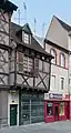 Maison de la fin du XVe siècle, avec un rez-de-chaussée en pierre et un premier étage en bois. Poteaux et sablières moulurés. Pignon agrémenté de deux aisseliers courbes, d'un faux entait et d'un poinçon. Les espaces triangulaires compris entre ces différentes pièces et la première ferme de la charpente sont trilobés. De petits motifs de bois polylobés décorent les aisseliers. Le poteau cornier porte une niche ornée d'accolades et de fleurons[1].