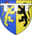 Écartelé : aux 1 et 4, parti, a, chevronné d'or et de gueules de douze pièces (d'Egmond), b,d'argent, à deux fasces bretessées et contre-bretessées de gueules (Arkel) ; aux 2 et 3, parti : a. d'azur au lion contourné d'or, couronné du même, armé et lampassé de gueules (Gueldre) ; b. d'or au lion de sable, armé et lampassé de gueules (Juliers). Sur le tout écartelé : aux 1 et 4, d'argent au lion de gueules à la queue fourchue passée en sautoir, armé, lampassé et couronné d'or (Luxembourg) ; aux 2 et 3, de gueules, à une étoile de seize rais d'argent (Baux).[5] Aussi portées par son frère cadet Lamoral, comte d'Egmont (1522†1568), prince de Gavre et de Steenhuisen, chevalier de la Toison d'or, puis ses successeurs. |