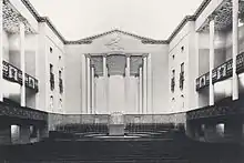 Les plans montrent un bâtiment pratiquement carré, avec toutefois un angle en retrait au croisement des rues Sveavägen et Kungsgatan. Tengbom place la grande salle côté Est, et la petite salle (la future salle Grünewald) perpendiculairement à la grande, côté Ouest. Pour le plafond de la grande salle, il utilise des couleurs pales, sans grande saveur, un concept architectural dans l'air du temps, mais que Tengbom est le premier à mettre en pratique dans un grand lieu public. Cet effet disparait néanmoins lors de rénovations qui ont lieu dans les années 1970, pendant lesquelles le plafond est repeint en couleur sombre. Tengbom crée également une perspective sur les murs, pour faire apparaitre la salle plus grande qu'elle n'est en réalité[2].