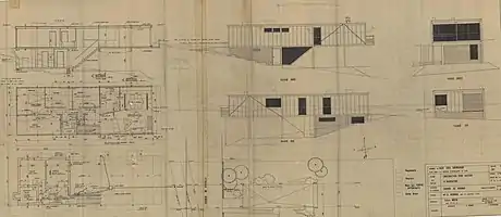 La maison présente quelques similitudes avec la maison personnelle de Charles Carlier qu'il fait construire en 56, quelques années avant la construction de celle-ci. L'entrée de la maison par le centre du plan et desservie par une sorte de passerelle surplombant la vallée. Les pièces de vie sont situées à l'extrémité du parallélépipède et celui-ci se termine par une terrasse donnant une vue sur la vallée. Le socle en béton encastré dans le terrain, lui aussi fortement en pente, contient l’atelier et une buanderie. Les étages supérieurs dépassent du socle et sont soutenus pas des piliers, ce qui donne l'impression de projection dans le paysage.