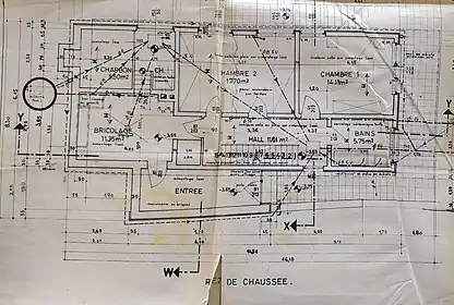Le bâtiment est tourné de manière que seulement une petite façade soit visible depuis la rue et ne dévoile que très peu aux visiteurs ; une porte de garage et une fenêtre. On accède à la maison de manière latérale. Il faut descendre quelques marches pour arriver à la porte d'entrée. L'escalier se trouve sur la droite et l'on peut rejoindre l'étage de vie du rez-de-chaussée en montant et déboucher dans le séjour. Celui-ci est terminé par un balcon donnant une vue imprenable sur la vallée. Un couloir sur la gauche dessert les chambres, la salle de bains ainsi que le garage. Au sous-sol, sur la gauche de la porte d'entrée se trouvent l'atelier, le bureau et les locaux techniques. Depuis le pas de la porte d'entrée, quelques marches descendent vers le jardin.