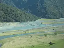 Surtout dans les cours moyen et inférieur de la rivière est une rivière tressée. La State Highway 6 (de) suit la rive gauche.