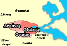 La tribu était elle-même répartie en 3 sous-tribus : les Paraliens, les Trachiniens et les Maliens Sacrés[2].