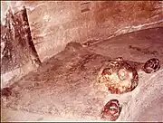À l'est de l'édifice I se trouve l'édifice III, composé de deux chambres, l'une rectangulaire et l'autre circulaire, également taillée dans la roche. Au moment des fouilles, on trouva sur le mur ouest de la chambre rectangulaire des peintures murales, dont il ne reste pratiquement rien. Elles représentaient trois guerriers.