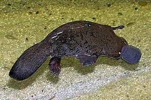 • les Protothériens : Ce nom désigne le fait que ces animaux ne possèdent pas de placenta mais pondent des œufs cléidoïques, c'est-à-dire à coquille épaisse comme ceux des oiseaux et des reptiles[29]. Les petits, après éclosion, sont allaités par la mère. Il n'y a plus aujourd'hui que cinq espèces dans ce groupe : l'Ornithorynque (Ornithorynchus anatinus), et quatre espèces d'Échidnés : Tachyglossus aculeatus, Zaglossus bartoni, Zaglossus attenboroughi et Zaglossus bruijni ;