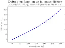 - v est la variation de vitesse entre le début et la fin de la phase propulsée considérée ;