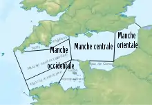 - La Manche occidentale est, quant à elle, classiquement divisée en quatre secteurs : les Baies anglaises, la Manche Nord-Occidentale, la Manche armoricaine, le Golfe Normand-Breton.