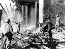 Soldat japonais se rendant à trois soldats américains dans les îles Marshall.