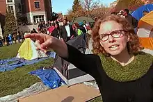 - Elizabeth Sawey, « Protesters use recruiting day to voice concerns about racism at MU », Columbia Missourian, (lire en ligne, consulté le ).