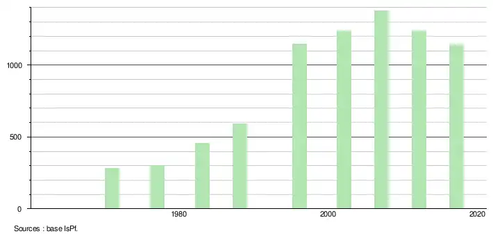L'évolution du nombre d'habitants est connue à travers les recensements de la population effectués dans la commune depuis 1971. À partir de 2006, les populations légales des communes sont publiées annuellement par l'Insee, mais la loi relative à la démocratie de proximité du a, dans ses articles consacrés au recensement de la population, instauré des recensements de la population tous les cinq ans en Nouvelle-Calédonie, en Polynésie française, à Mayotte et dans les îles Wallis-et-Futuna, ce qui n’était pas le cas auparavant[2]. Pour la commune, le premier recensement exhaustif entrant dans le cadre du nouveau dispositif a été réalisé en 2002[3], les précédents recensements ont eu lieu en 1996, 1988, 1983, 1977 et 1971.