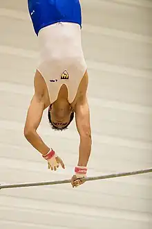 - Les maniques pour les barres asymétriques, qui possèdent deux trous et un petit bourrelet. Elles s'apparentent beaucoup aux maniques anneaux.