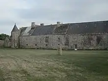 Le corps de logis est un bâtiment d'environ 28 mètres de long sur 9 mètres de large. Il comporte deux étages et son toit — à l'origine entièrement couvert de schiste bleu — est incliné à environ 45°. Les sept fenêtres de la façade principale sont régulièrement ordonnées, résultat d'un réaménagement du XIXe siècle. Côté cour, une aile presque carrée au toit pyramidal est jointe au bâtiment principal par une tour octogonale au toit pointu, servant d'escalier[5]. Côté jardin, la façade a gardé son style original du XVe siècle, dont une fenêtre Renaissance aux moulures prismatiques[4]. Les vastes caves auraient été le débouché d'un tunnel menant au château de Saint-Pierre-Église[5].